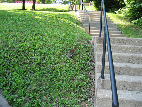 I'm not very threatening or something. I was six feet away from the bunny, yet it sat staring at me like that for about thirty seconds while I played with the camera. Hello, I eat your kind! I make you into curry! So dangerous!